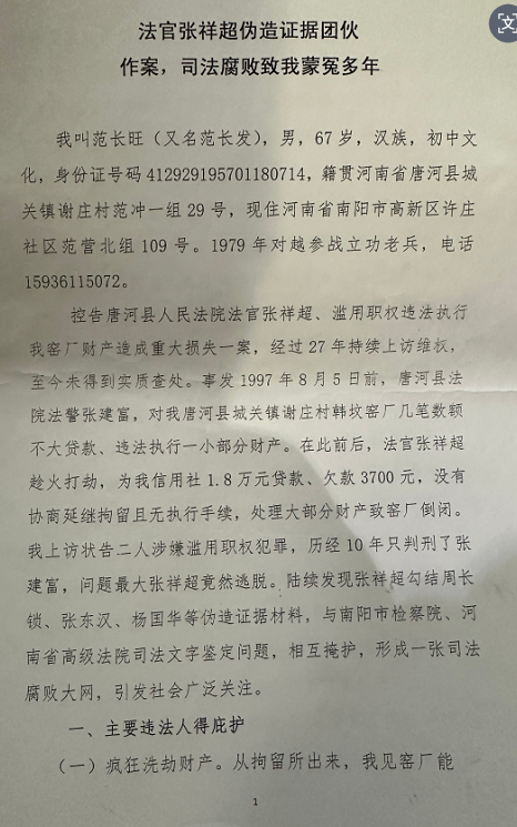 编者按越战卫国固山河,铁血丹心笑长歌。退伍兴业富乡亲,天降横祸坎坷多。维权艰难日复月,省会京城苦奔波。 二十九年心酸泪,未曾开言泪先落。范长发,又名范长旺,河南南阳唐河人,越战退伍回乡后,为带领乡亲脱贫致富,筹钱创办了韩坟砖厂。在