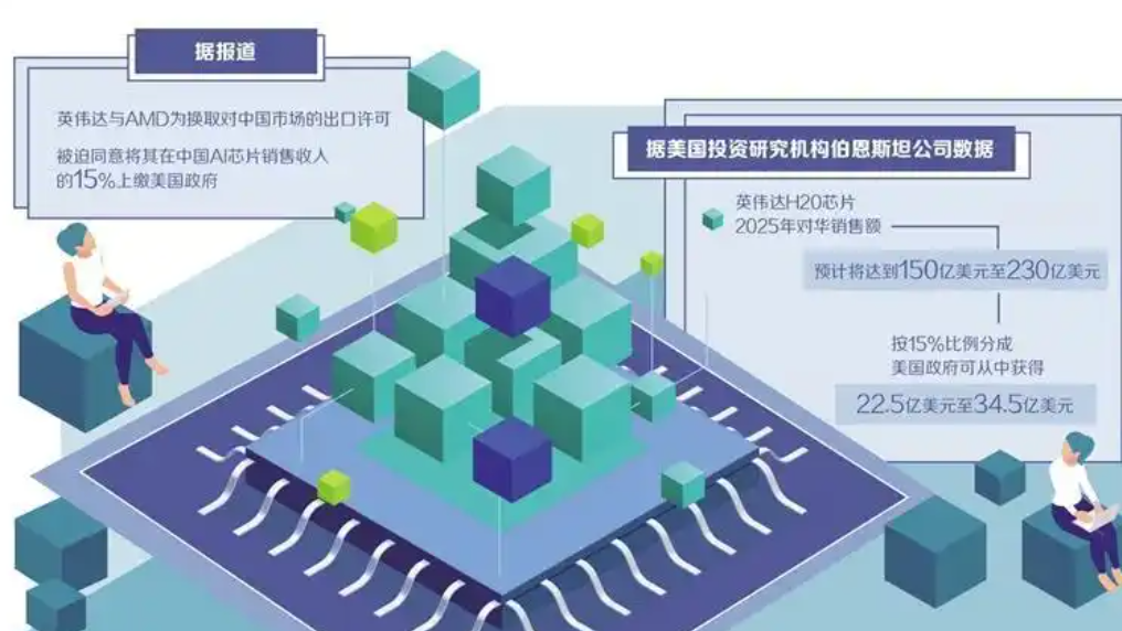 8月11日,一则关于英伟达与美国超威半导体公司(AMD)的消息在全球科技界掀起波澜。据报道,这两家美国芯片巨头为换取对中国市场的出口许可,被迫同意将其在中国人工智能(AI)芯片销售收入的15%上缴美国政府。这一史无前例的安排,不仅引发美国股市震